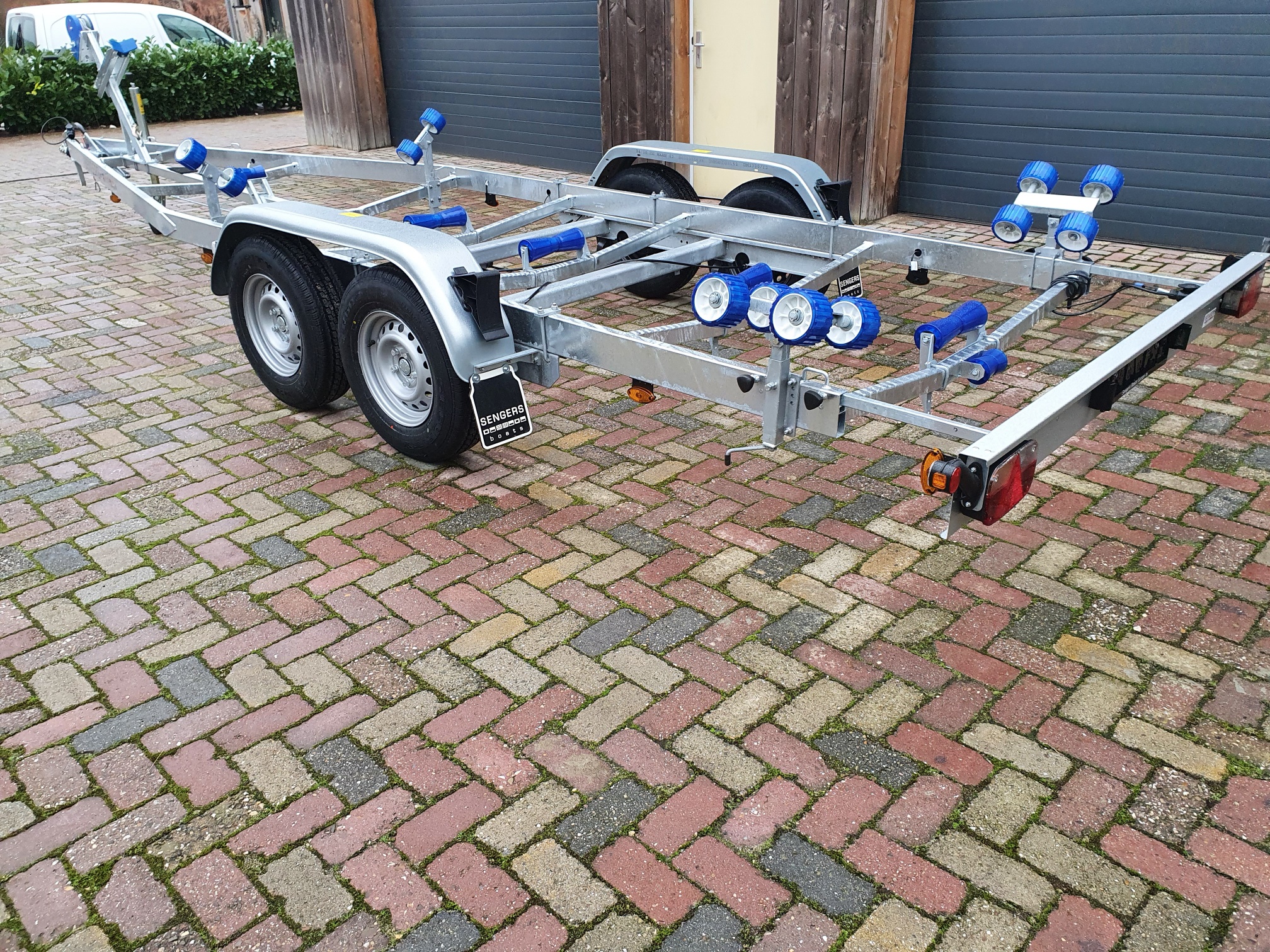 Let op, bij ons worden deze trailers standaard geleverd met vooraan 2x kimrollen en achteraan 4x dubbele kimrollen op opdraaisteunen (zoals afgebeeld). Genoeg rollen om de boot soepel en gemakkelijk op en af de trailer te krijgen. Mocht u het aantal rollen willen uitbreiden kan dit natuurlijk tegen een geringe meerprijs.